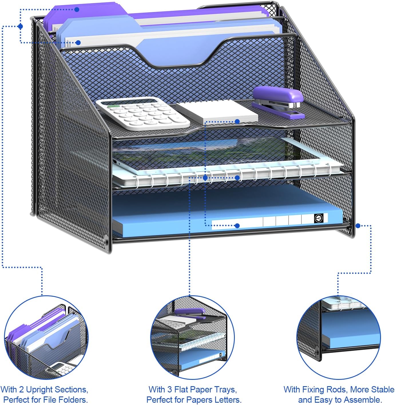 Crafted from durable metal mesh, this organizer not only adds a modern touch to your desk but also offers exceptional strength and stability. The black finish complements any office decor, making it an ideal addition to your workspace. Whether you’re at home or in a corporate environment, the Samstar Desk File Organizer helps you maintain a clutter-free area, boosting your productivity and focus.